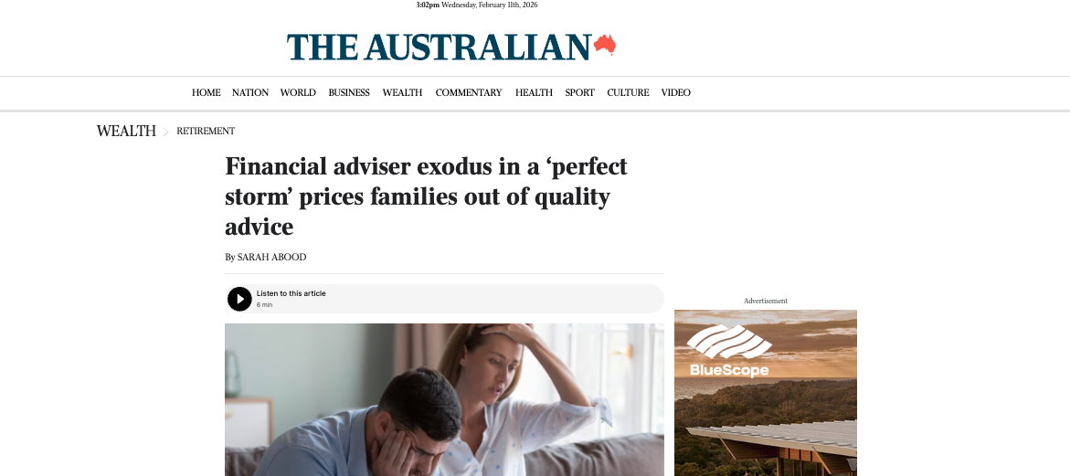 Quality financial advice is essential, yet it's becoming harder to access for many Australian families. In The Australian, Sarah Abood, CEO of the Financial Advice Association Australia (FAAA), writes how rising costs and an ongoing adviser exodus are pricing everyday Australians out of professional guidance at a time when it's needed most.